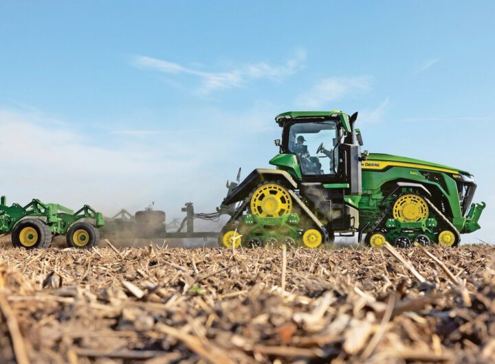 John Deere savo 8R ir 8RX serijas papildė trimis naujais didelės arklio galios traktorių modeliais, kurių vardinė...